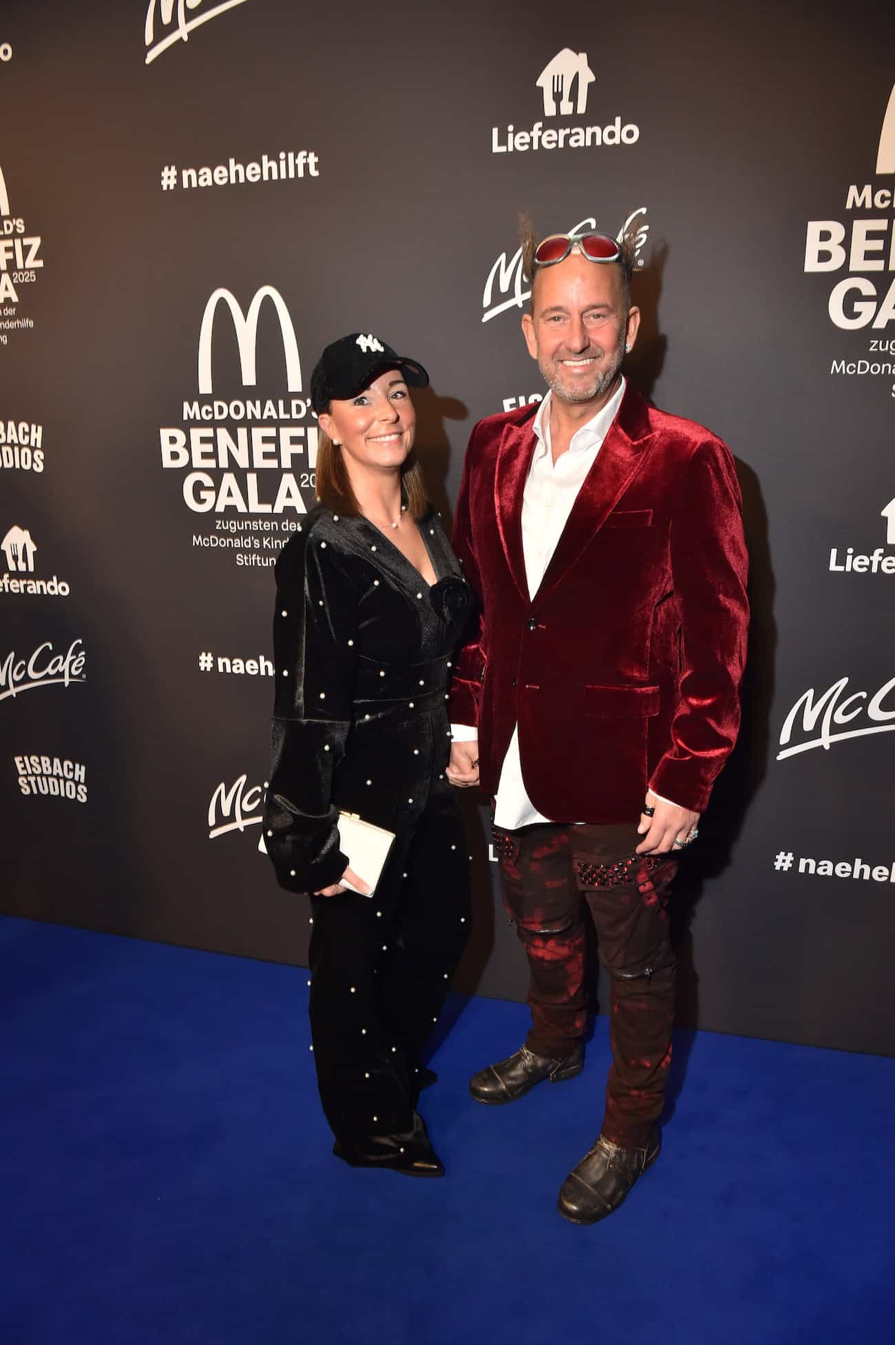Alles drehte sich an diesem Abend um die Kids. Und bei den Promis spielte das Thema Nachwuchs die Hauptrolle. Auch bei Moderator und Zweifach-Papa Thore Schölermann, der Schirmherr des Hauses in München-Großhadern ist und mit Stammgast bei der Gala ist. Hatte er in den Vorjahren noch moderiert, so konnte er die Gala dieses Mal mit seiner Frau als Gast im Publikum genießen. Sie kam im roten Kleid, er mit rot-weißen Socken: „Es ist das erste Mal, dass wir bei dieser Gala gemeinsam an einem Tisch sitzen können. Ich habe mir heute eigens die Spendiersocken von McDonald’s angezogen“, freute er sich. „Unsere Kinder sind heute Abend bei der Oma.“ In ihrem Leben spielen die Kinder die Hauptrolle: „Früher haben unsere Eltern Weihnachten für uns schön gemacht, jetzt machen wir Weihnachten für unsere Kinder schön. Die Magie ist zurück.“ Ist Kind Nummer 3 geplant? Sie schüttelte schmunzelnd den Kopf: „Zu viert sind wir durchaus komplett.“ Die beiden hätten aber auch wunderbar eine Fußballmannschaft zu Hause haben können, denn er ersteigerte bei der Auktion ein Package mit 15.000 McMenü Small für satte 31.000 Euro…