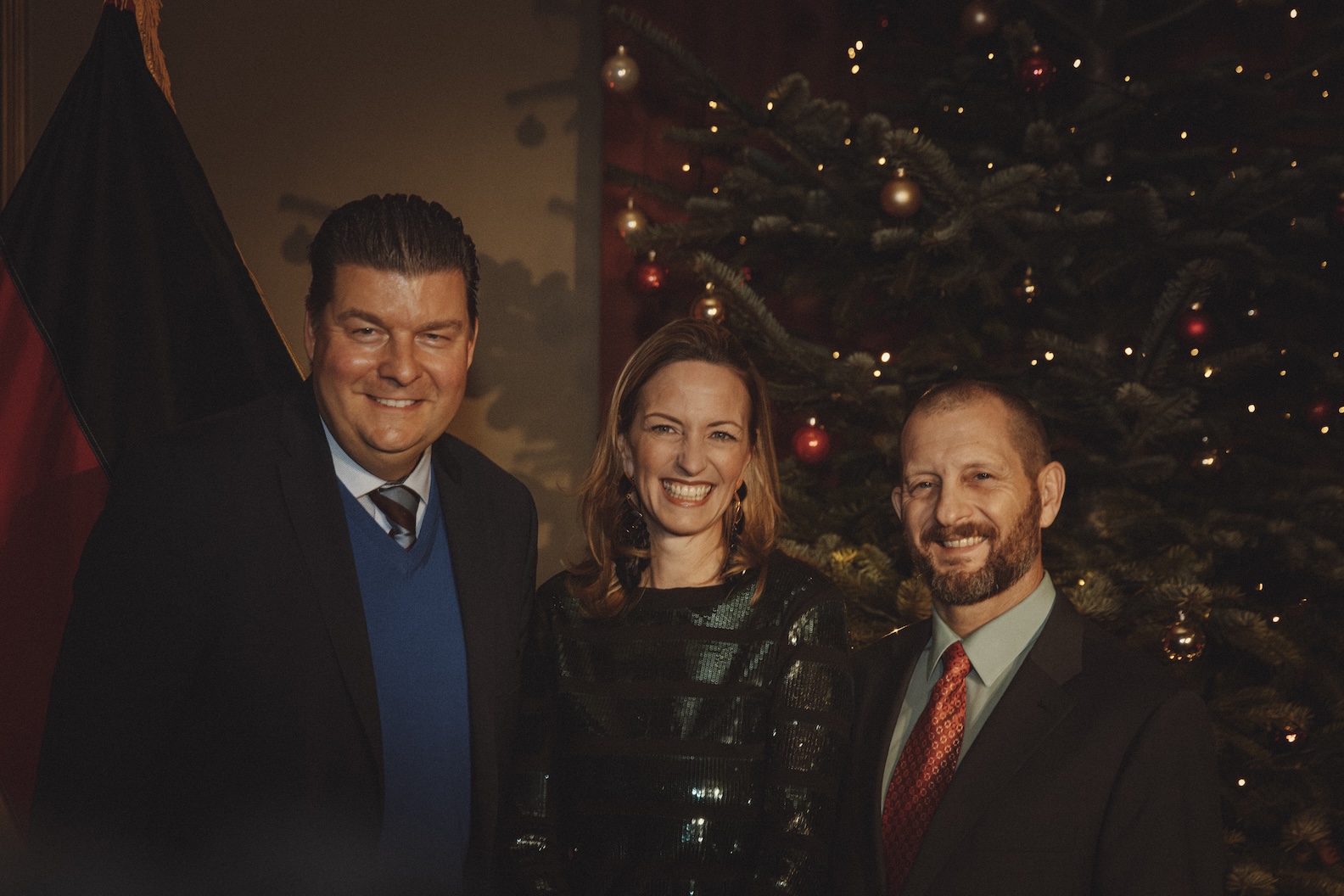 Dr. Andreas Dressel, Senator Finanzen & Bezirke, Dorothée Schlereth und US-Generalkonsul Scott Woodard, Derag - Christmas Tree Lighting Hamburg, BILDER CREDIT: Jakob Schubert für Living Hotels.
