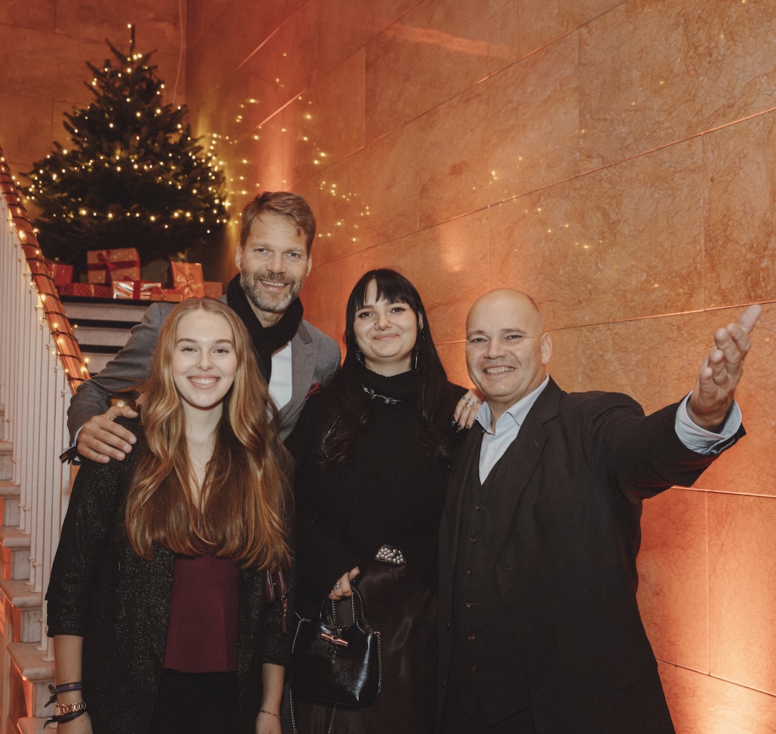 Niko Kazal mit Living Hotels COO Wolfgang Skuballa, Dorothée Schlereth und Direktor Daniel Döscher vom Living Hotel Das Viktualienmarkt. Derag - Christmas Tree Lighting Hamburg, BILDER CREDIT: Jakob Schubert für Living Hotels