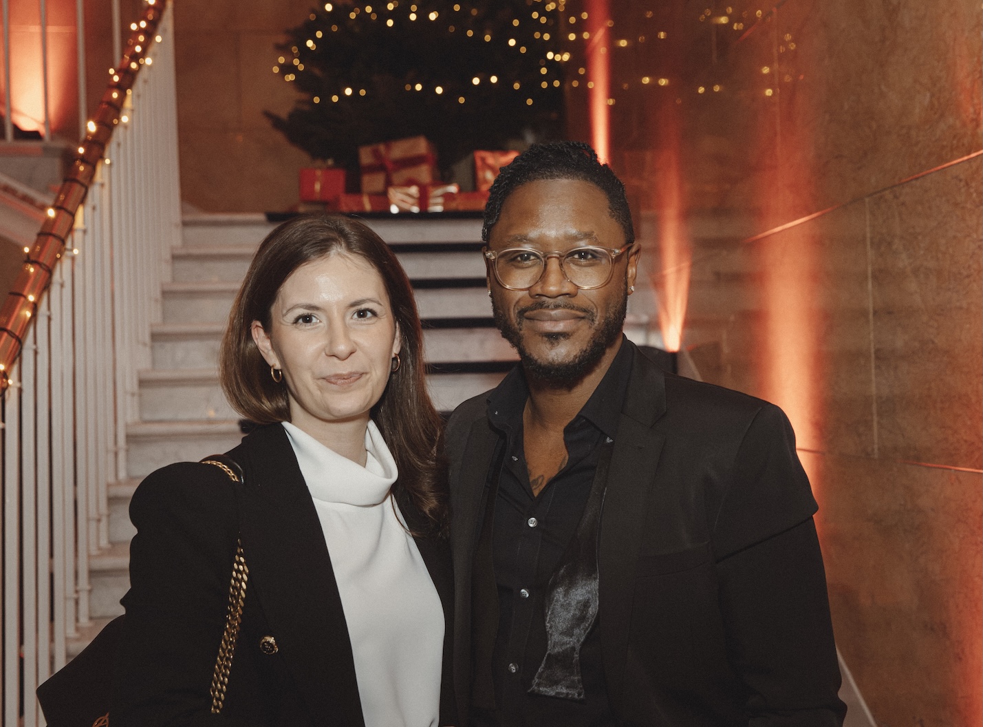 Diese Worte waren für den Abend Programm: Momente der Gemeinschaft zu feiern und Traditionen zu pflegen. Bei kulinarischen Köstlichkeiten des Münchner Gastronomen Michael Schlotter, der während seiner Zeit als Küchenchef im Gourmetrestaurant „Aubergine“ in Starnberg einen Michelin-Stern erkochte und weihnachtlichen Soulklängen von Sängerin Johanna Schneider gab es unter den 180 Gästen – darunter Susan Elbow (ehemalige US-Generalkonsulin Hamburg), Iris von Arnim (Modedesignerin), Christian Völkers (Engel & Völkers), Michel Abdollahi (TV-Journalist), Lenn Kudrjawizki (Schauspieler), Kaylo Motaung, (Sänger), Niklas Liepe (Opus Preisträger), Undine & Harald Baum (Pantaenius Versicherung), Anita & Bruder Christian Paul Hinneberg (Unternehmer), Ulf Gehrckens (Aurubis), Monika Schorn (Richterin a.D., Vorstand Weisser Ring), Jan Störmer (Architekt), Nataly Langner (Langner Stiftung), Lars & Kai Rose (Klambt Verlag), die Architekten des Hauses Martin Murphy & Stephen Williams etc. – regen Austausch, viel Lachen und jede Menge Leuchten in den Augen.