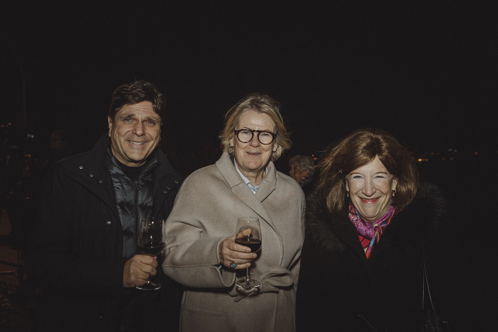 Aurubis Vorstand Ulf Gehrckens mit Ulrike Schmidt, Opernstiftung & Susan Elbow. Derag - Christmas Tree Lighting Hamburg, BILDER CREDIT: Jakob Schubert für Living Hotels