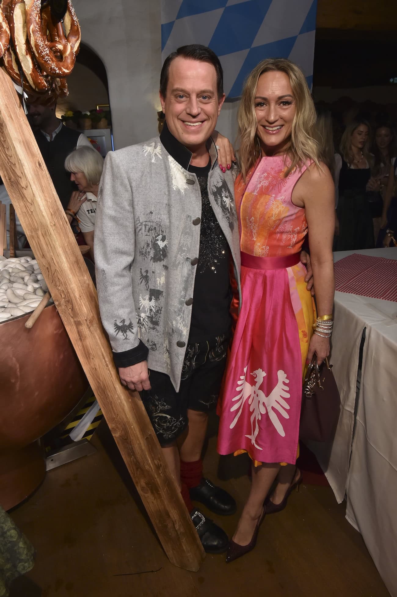 Bereits früh brachte Oimara die Reithalle zum Beben. Spätestens bei seinem Hit „Wackelkontakt“ sangen und tanzten alle Gäste ausgelassen mit – bevor Dick Brave mit einem 50-minütigen Rock’n’Roll-Set für Begeisterung sorgte. Ganz in Stanglwirt-Tradition trat damit einmal mehr ein enger Freund des Hauses als Hauptact auf – und das genau am Veröffentlichungstag seines neuen Albums, das direkt in die Charts stürmte. Das gibt es nur im Stanglwirt: Zu der mitreißenden Performance tanzten Stars wie Elton, Rea Garvey und Barbara Meier Seite an Seite mit den Gästen – mittendrin statt nur dabei. Erstmals auf der Weißwurstparty: Jürgen Klopp, Michael Patrick Kelly, Alex Pettyfer. Und typisch Weißwurstparty: die besondere Mischung aus Schauspielern und TV-Stars (u.a. Leo Reisinger, Florian Brückner, Birgit Schrowange oder Motsi Mabuse), Musikern (u.a. Kay One, Alec Völkel und Sascha Vollmer – The BossHoss), Sportlern (u.a. Maria Riesch, Hans-Joachim Stuck oder Roman Weidenfeller) sowie Influencern (u.a. Mrs. Bella, Pamela Reif oder Emma Svenningson). Für eine weitere musikalische Überraschung sorgte zu später Stunde nochmal der Oimara – dieses Mal gemeinsam mit Melissa Naschenweng in der Erdinger Hütt‘n.