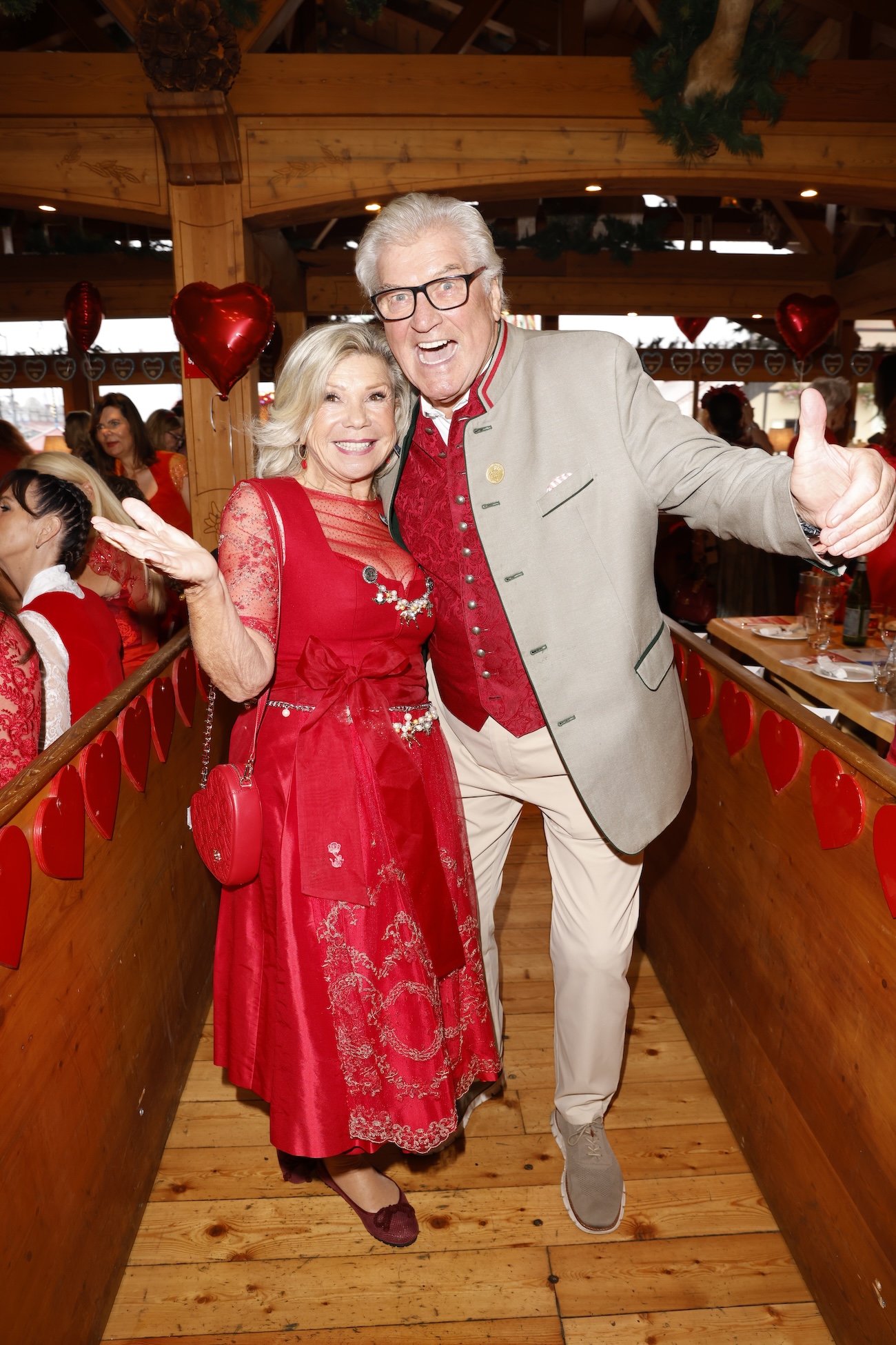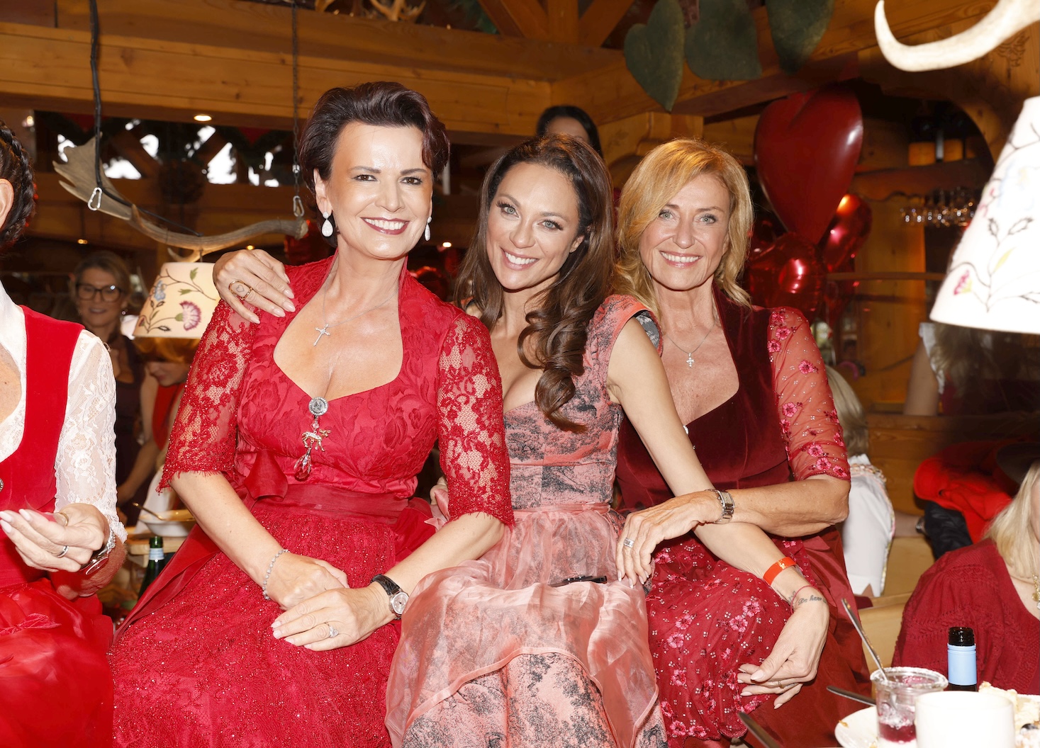 Dirndldesignerin und Gastgeberin Astrid Söll kommentierte den Dresscode: „Da wir uns heute zur Ladies Red Wiesn und für einen wohltätigen Zweck treffen, passt ein rotes Dirndl zum Anlass. Die Farbe Rot, die sehr präsent ist, steht natürlich auch für die Herzensangelegenheit, die heute unterstützt wird.“