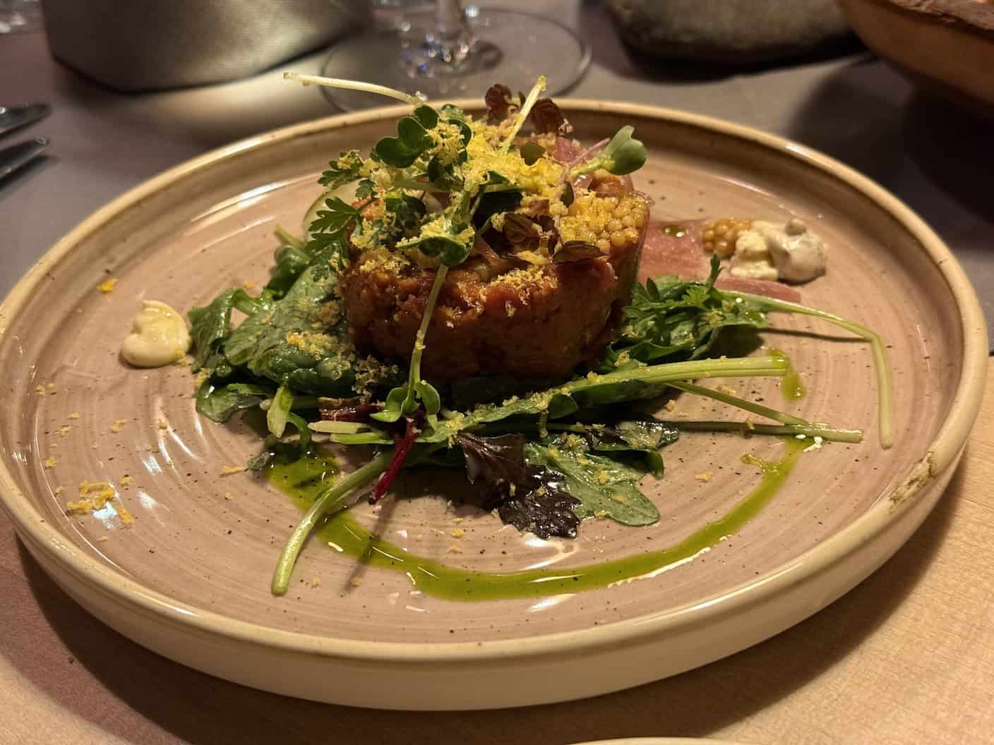 Sein Vorgänger Alex Schareina hat das Genusswerk über fünf Jahre zu einer festen Adresse für Genießer gemacht. Auf diesem Fundament baut Siegers auf und führt die Erfolgsgeschichte mit eigener Note weiter. Das Genusswerk in den Alpzitt Chalets bietet Gästen maximale kulinarische Flexibilität: Zur Wahl stehen Dinner à la carte im stilvollen Restaurant, private Dining-Erlebnisse im eigenen Chalet oder liebevoll arrangierte Speisen, die direkt ins Chalet geliefert werden – höchste Qualität und persönliche Betreuung stehen stets im Vordergrund. Die frischen, hochwertigen Zutaten kommen von Partnern aus der Umgebung: Dorfbäckerei, Eismanufaktur, Imker – es ist ein fein abgestimmtes Netzwerk regionaler Produzenten, das man auf dem Teller schmeckt.