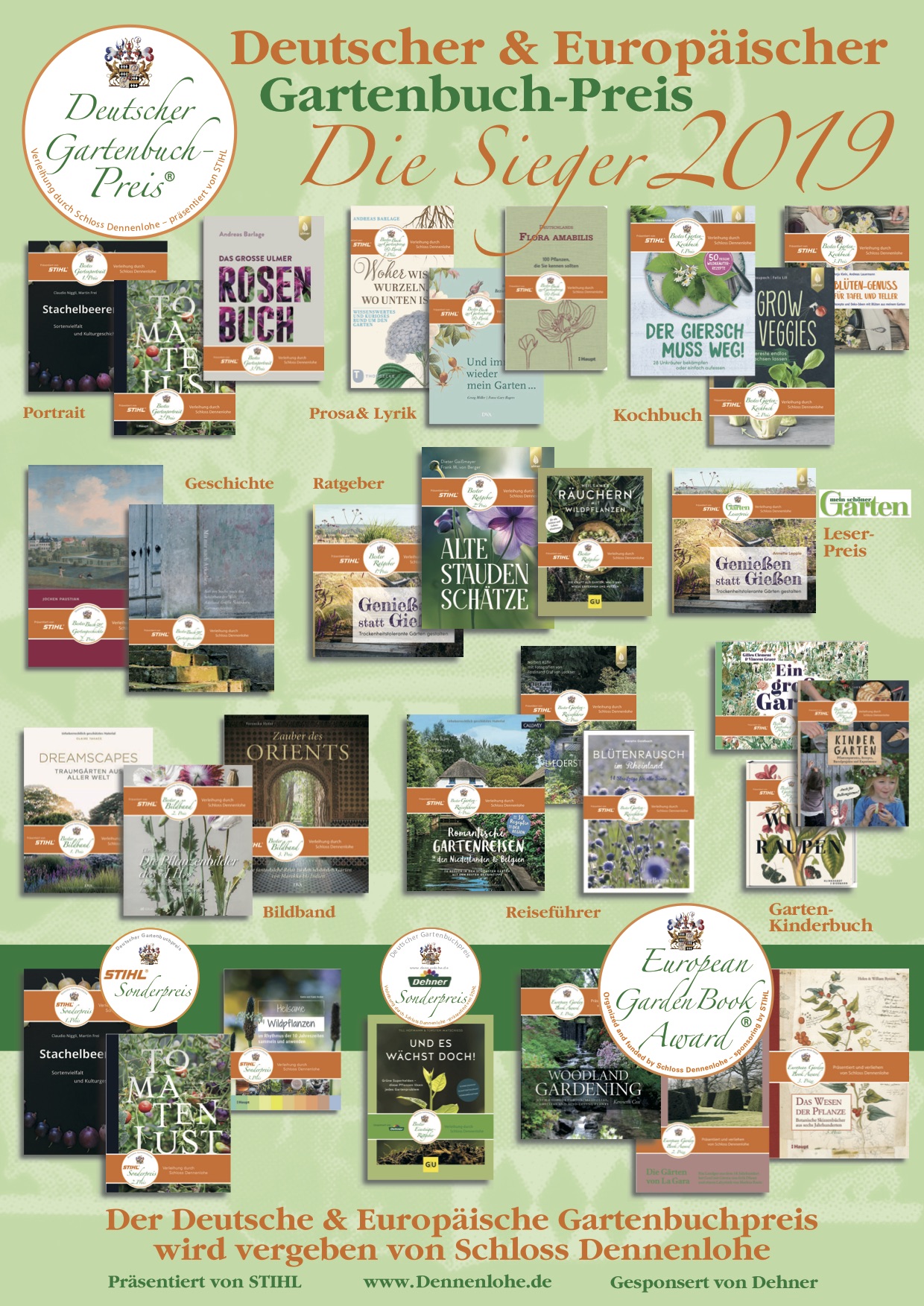 Am 15. März 2019 wurde zum dreizehnten Mal der Deutsche Gartenbuchpreis auf Schloss Dennenlohe verliehen. Der Deutsche Gartenbuchpreis, präsentiert von STIHL, wird von Schloss Dennenlohe in neun Kategorien vergeben. In diesem Jahr wurden über 100 von den Verlagen eingereichte Bücher von der Jury bewertet:
