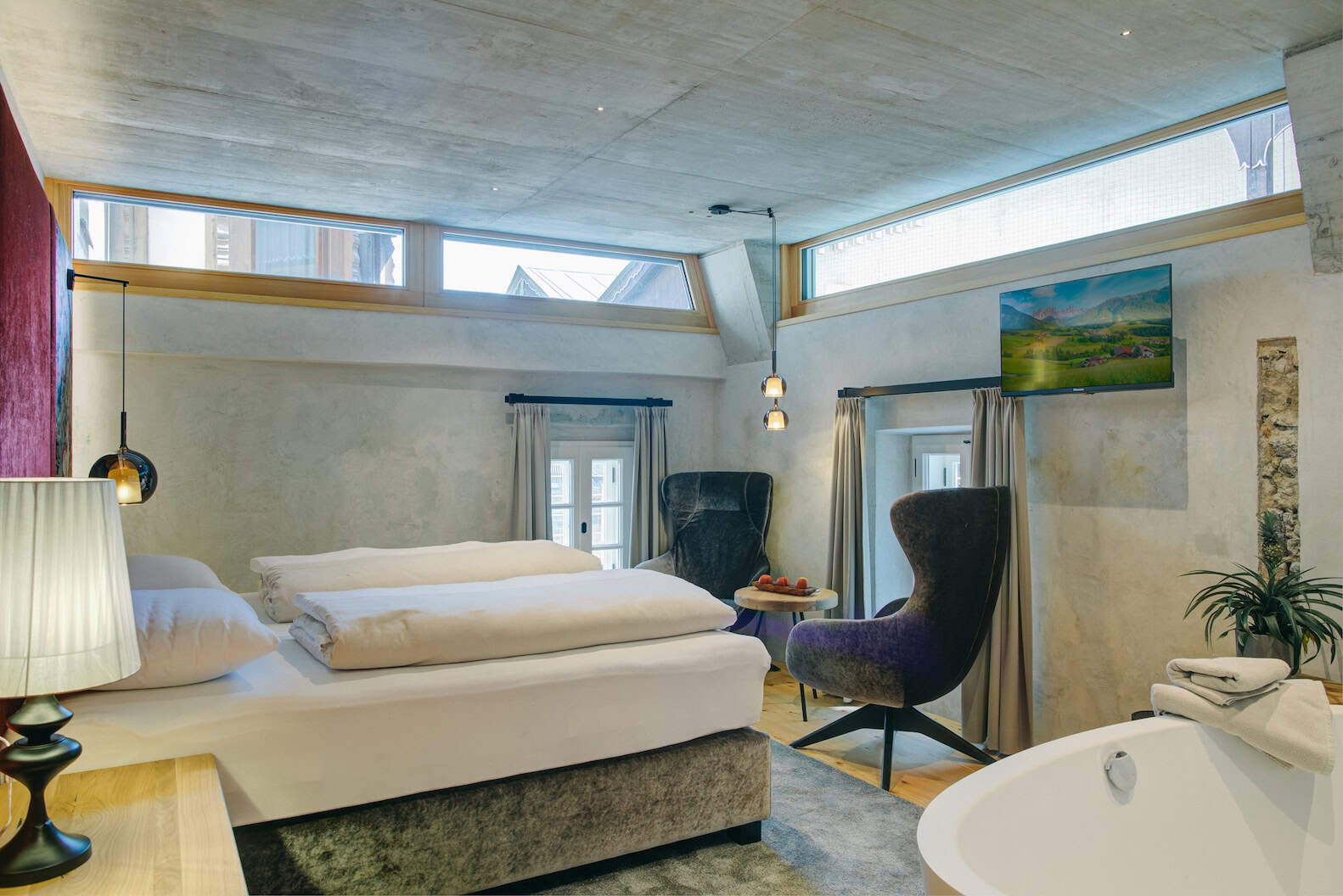 Jedes Zimmer erzählt seine eigene Geschichte, inspiriert von Weltmetropolen, faszinierenden Ländern oder der Kufsteiner Stadtmauer. Abgerundet wird der Aufenthalt durch den neuen Relaxbereich mit traumhafter Aussicht auf den Inn und die Berge.