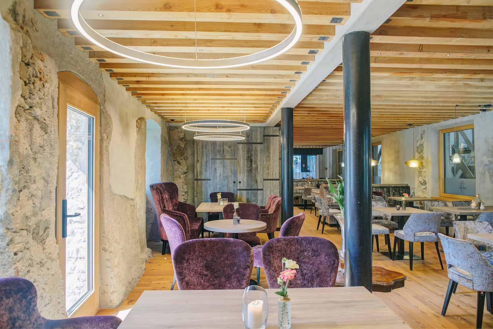 Besonders sichtbar wird das in den behutsam restaurierten Räumen. In der Südtirolerstube, einst Kaminstube, wurden historische Wandmalereien freigelegt und in das heutige Ambiente eingebunden. Entstanden ist ein Raum, der Wärme ausstrahlt und zum Zusammensitzen einlädt.
