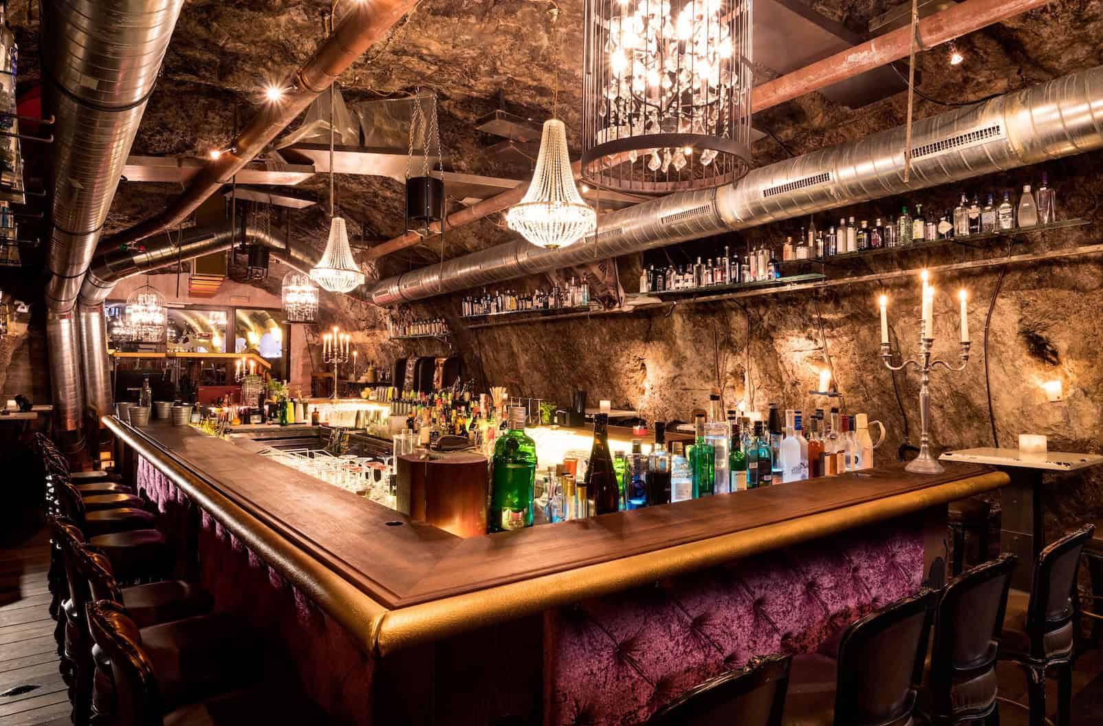 Die Stollen 1930 – Gin Gallery liegt 90 Meter tief im Festungsberg und gilt mit über 1.300 Gin Sorten als größte Gin Gallery Europas. Die elegante Speakeasy Bar begeistert mit Kristalllustern, Samt, Leder und erstklassigem Service sowie mit Fancy Drinks und Signature Cocktails.