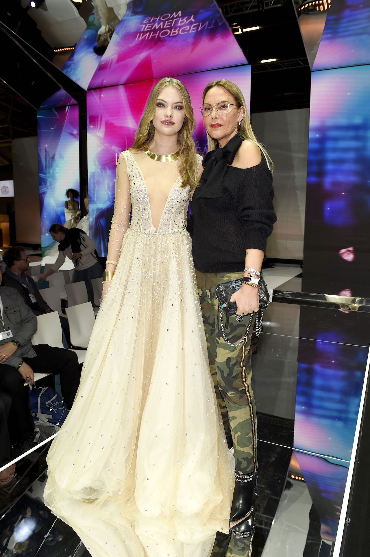 Natascha Ochsenknecht hatte mit ihrer Tochter mitgefiebert und war zu Recht stolz: „Ich glaube, wir waren vor der Show beide gleich aufgeregt. Ich habe gehofft, dass sie nicht stolpert – und sie selbst auch. Sie hat das super gemacht.“ Sie hatte ihre Tochter nur zu gerne begleitet: „Wenn ich die Zeit habe, dann bin ich gerne mit dabei, bei allen meinen Kindern. Heute besonders gerne, denn bin schließlich gelernte Schmuckkauffrau. Und deshalb auch sehr schmuckaffin. Ich mag Stücke, die anders und außergewöhnlich sind. Zum Beispiel meine Sicherheitsnadeln in den Ohren, die ich auch heute trage.“ Werden wir noch einmal einen Ehering an ihrem Finger sehen? „Heidi Klum wird ständig danach gefragt, ob sie schwanger ist und ich danach, ob ich wieder heirate. Ich beantworte diese Frage aber mit ‚nein‘.“ Sie kam ohne ihren Lebensgefährten Oliver: „Er muss arbeiten und ist heute in Berlin auf der Messe.“