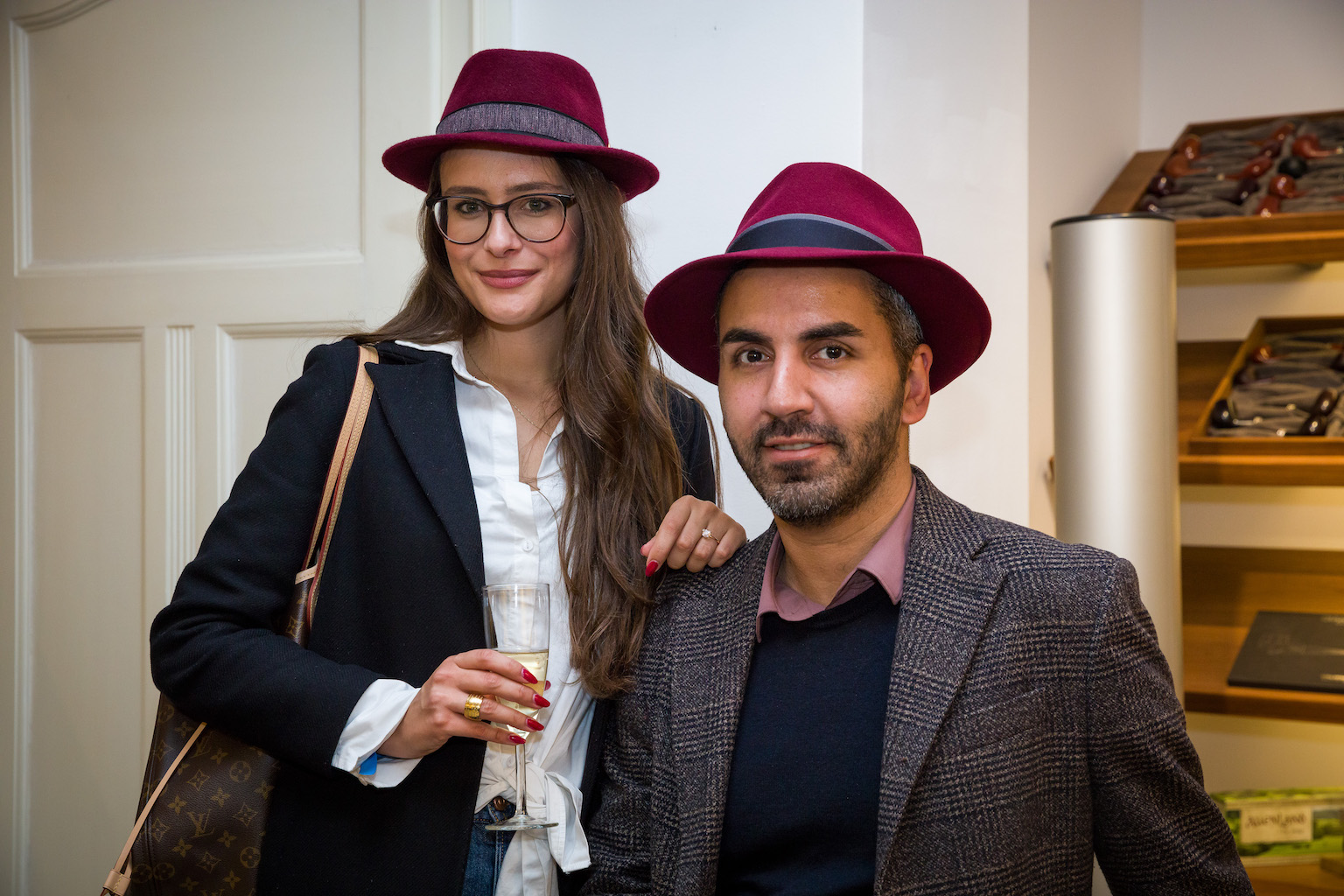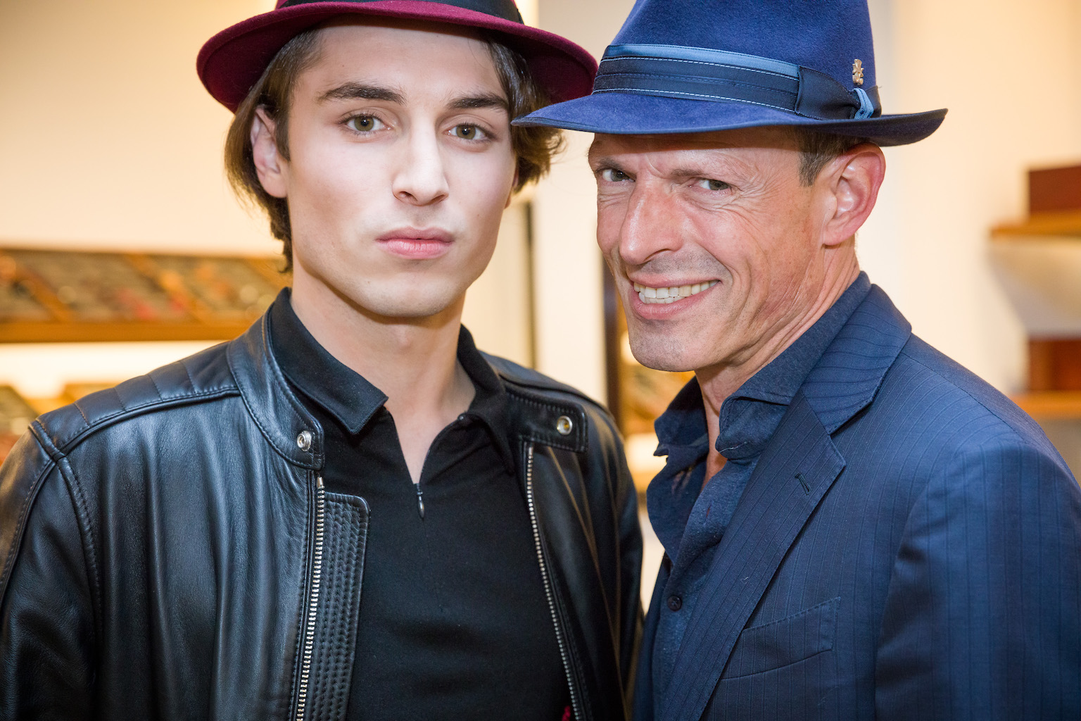 John Friedmann ist Stammgast: „Michi Zechbauer ist nicht nur ein Spezl von mir, sondern ich durfte auch schon bei mehreren seiner Hut-Kollektionen der letzten Jahre Model sein“, erzählte der Schauspieler. „Da habe ich gemerkt, dass ich ein Hutgesicht habe. Ein guter Hut ist ein willkommenes Schmuckstück für einen Mann. Ich selbst habe viele Hüte, vom Sommerhut für den Strand bis hin zum edlen Hut für den Weg zur Dinner-Party. Hier Im Geschäft bin ich auch immer sehr gerne. Nicht zuletzt, weil ich schon seit Jahrzehnten offizieller Zigarillo- und privater Pfeifenraucher bin“. Er kam mit Hut und mit Schnauzbart: „Ich bin ja derzeit wieder mit „Erkan & Stefan“ auf Tour, und das noch bis 2021. Vorgestern sind wir im ausverkauften Zirkus Krone aufgetreten. Erkan trägt nach wie vor Mütze, ich gerne Hut.“ Vor allem die Hüte in der neuen Trendfarbe Bordeaux, die an diesem Abend präsentiert wurden, hatten es ihm angetan: „Eine supercoole Farbe, auch für Männer.“