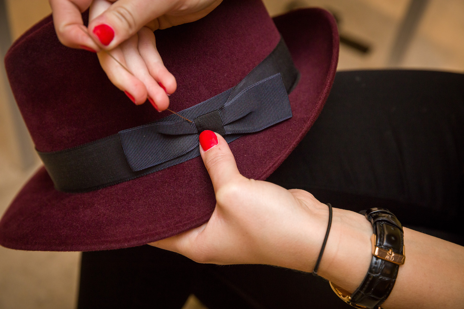Vor Ort hatten die Gäste die Gelegenheit, sich ihren Hut-Favoriten mit einem besonderen Hutband oder den Initialen durch Modistin Philomena Johler veredeln zu lassen.