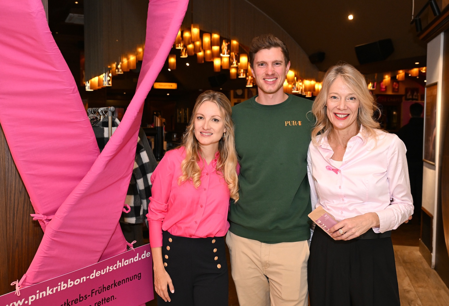 Vanessa Eichholz, Tobias Burkhart und Christina Kempkes / Pink Yoga Brunch / Hard Rock Cafe / München / 19. Oktober 2025 / „Pink Ribbon - für mehr Früherkennung bei Brustkrebs“ / Foto: Frank Rollitz / ABR-Pictures