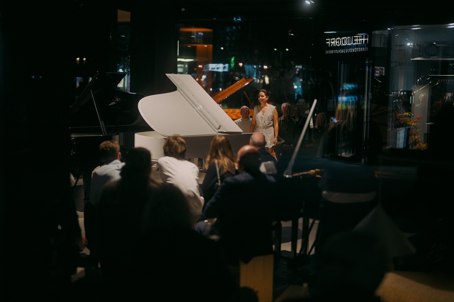 Begleitet wurde der Abend von einem eindrucksvollen Konzert des renommierten Duos Blanc & Noir, das die besondere Atmosphäre des Events musikalisch untermalte. Inmitten eleganter Instrumente, stilvoller Architektur und inspirierender Gespräche entstand ein Abend, der die Gäste sowohl kulturell als auch ästhetisch begeisterte.
