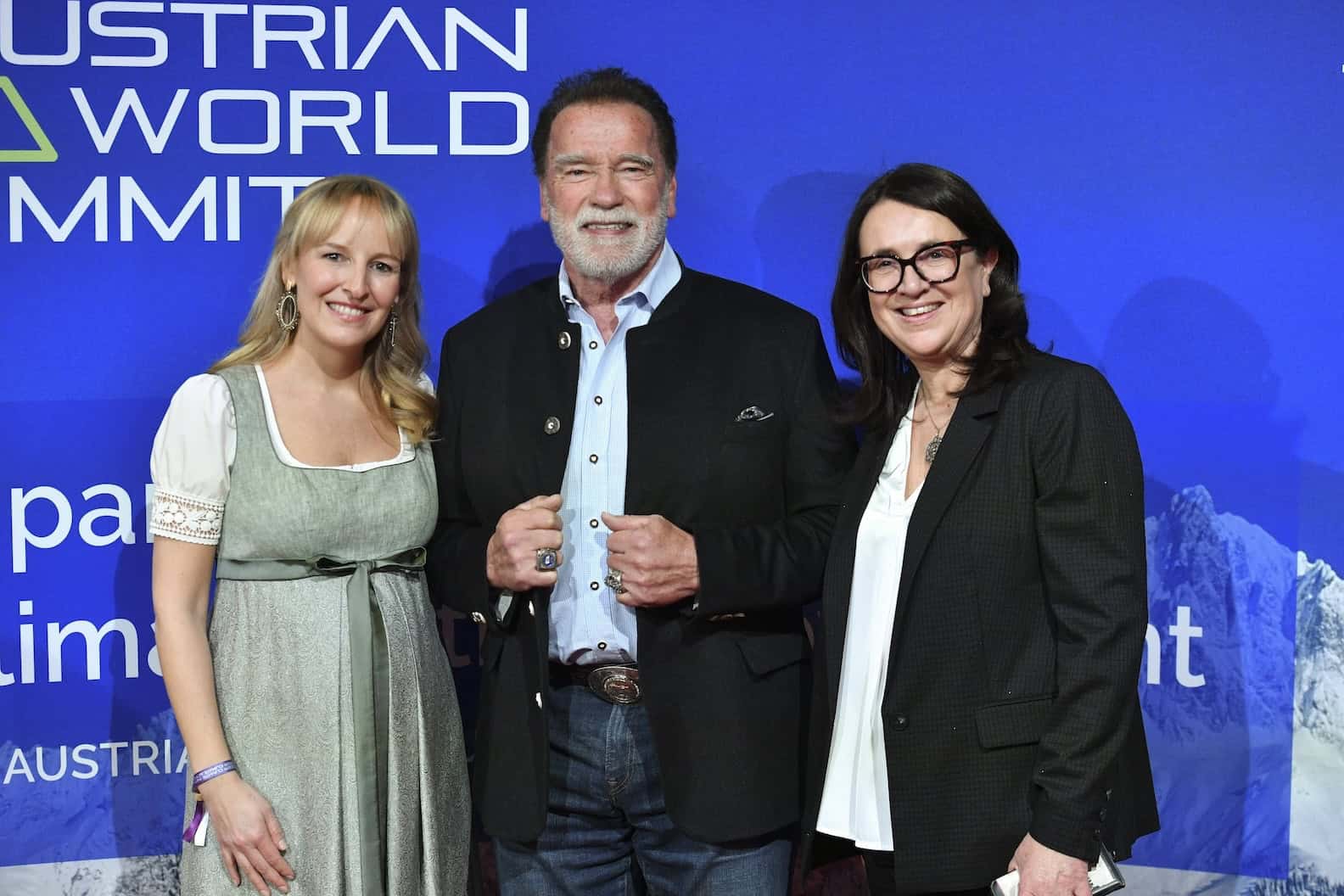 Maria Hauser (Stanglwirt), Arnold Schwarzenegger, Monika Langthaler, Austrian World Summit im Biohotel Stanglwirt in Going bei Kitzbühel am 22.01.2026