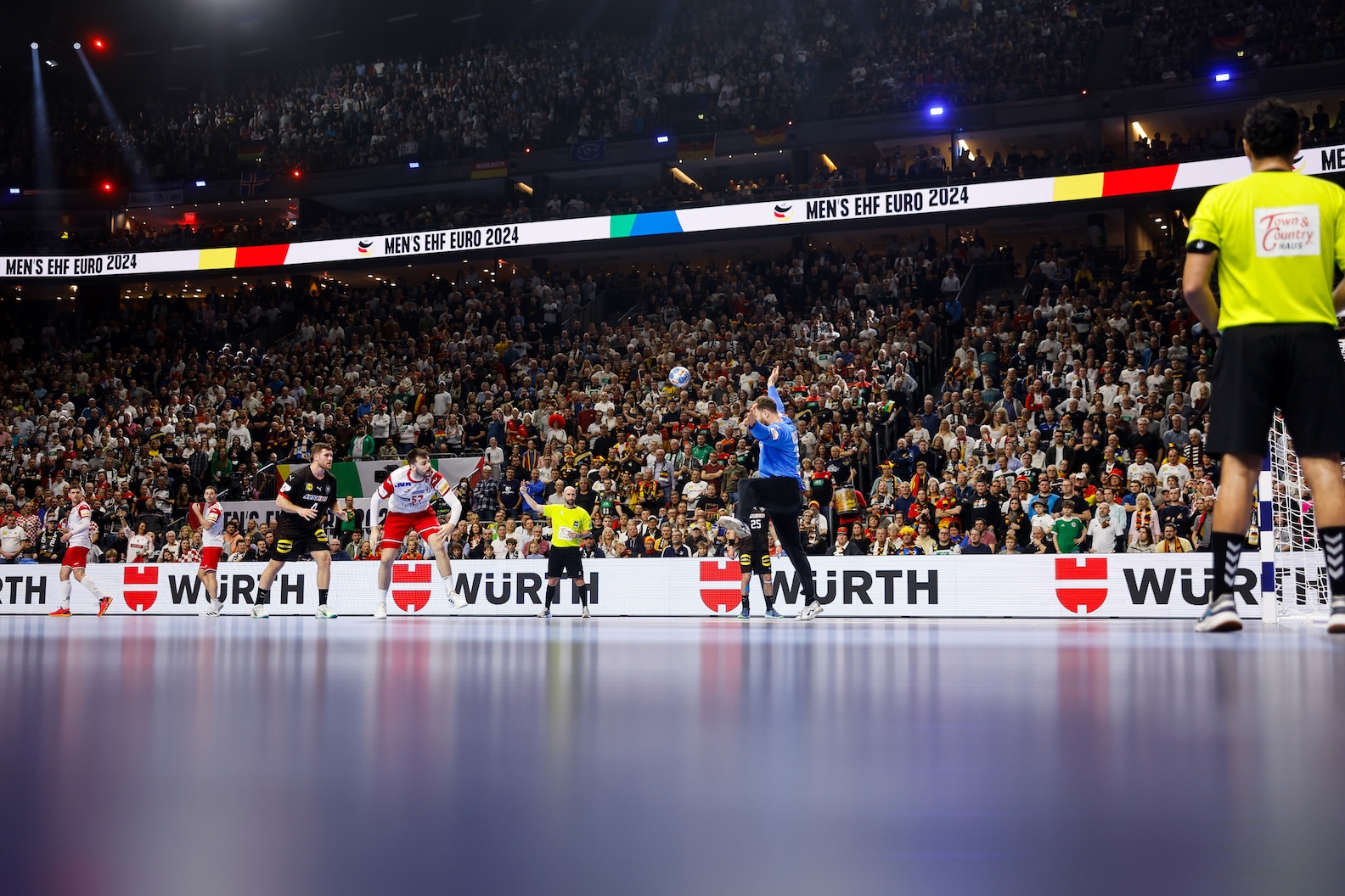 Das Würth Logo bei der Handballeuropameisterschaft 2024 im Spiel Deutschland gegen Kroatien © Axel Heimken / kolektiff